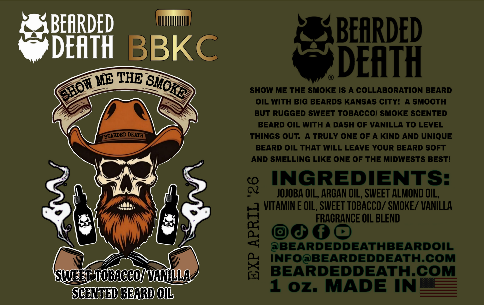 BEARDED DEATH/ BBKC SHOW ME THE SMOKE COLLABORATION BEARD OIL 1 oz