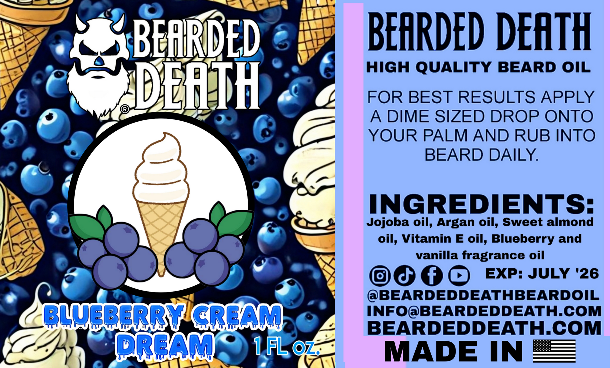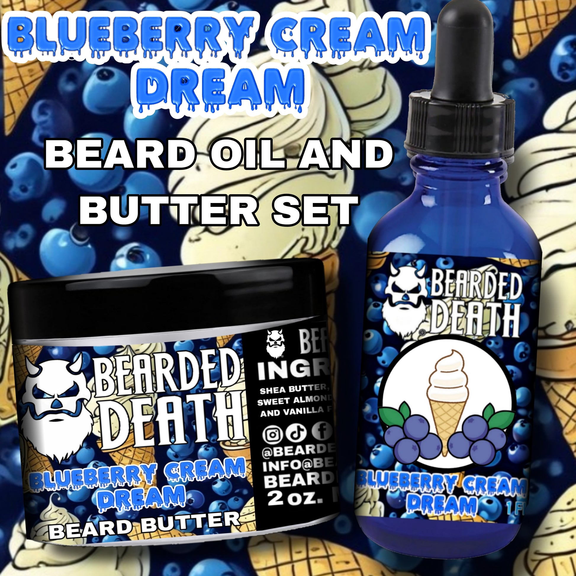 BEARDED DEATH BLUEBERRY CREAM DREAM BUTTER AND BEARD OIL SET.
