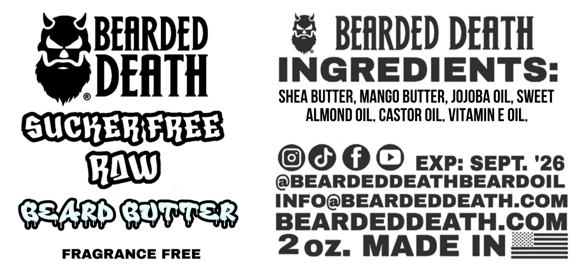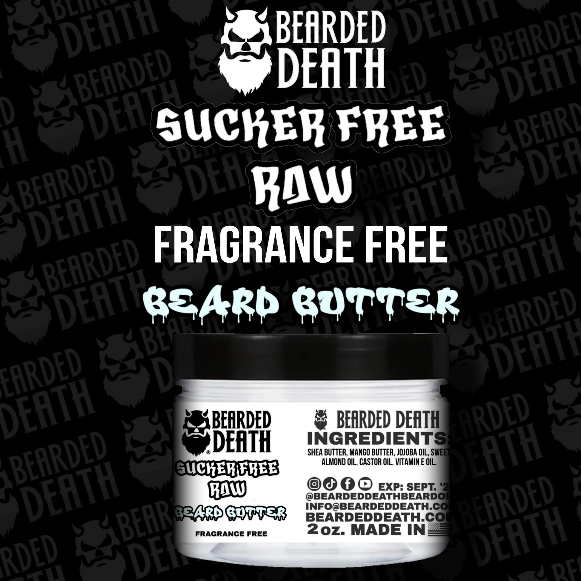 Bearded Death Sucker Free Raw beard butter is the perfect beard butter if you're in the need of something with no fragrance. This smooth, creamy, whipped beard butter has only its natural raw scent.